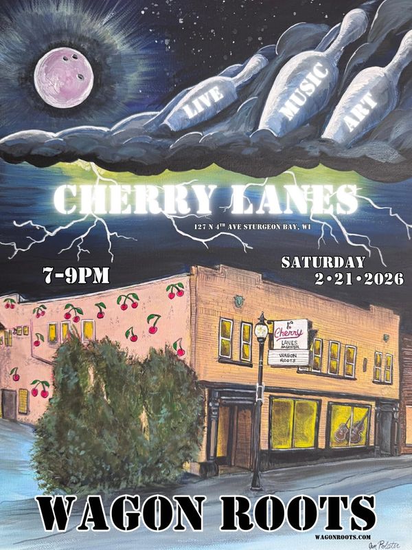 Wagon Roots are creators of original Door County art. An original acoustic string duo that writes their own songs and paints amazing original promotional show posters (No A.I) Mike Bleck wrote the majority of the original songs in the Wagon Roots early repertoire collaboratively with his song family at the Holiday Music Motel in Sturgeon