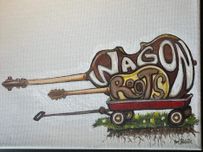 Wagon Roots are creators of original Door County art. An original acoustic string duo that writes their own songs and paints amazing original promotional show posters (No A.I) Mike Bleck wrote the majority of the original songs in the Wagon Roots early repertoire collaboratively with his song family at the Holiday Music Motel in Sturgeon